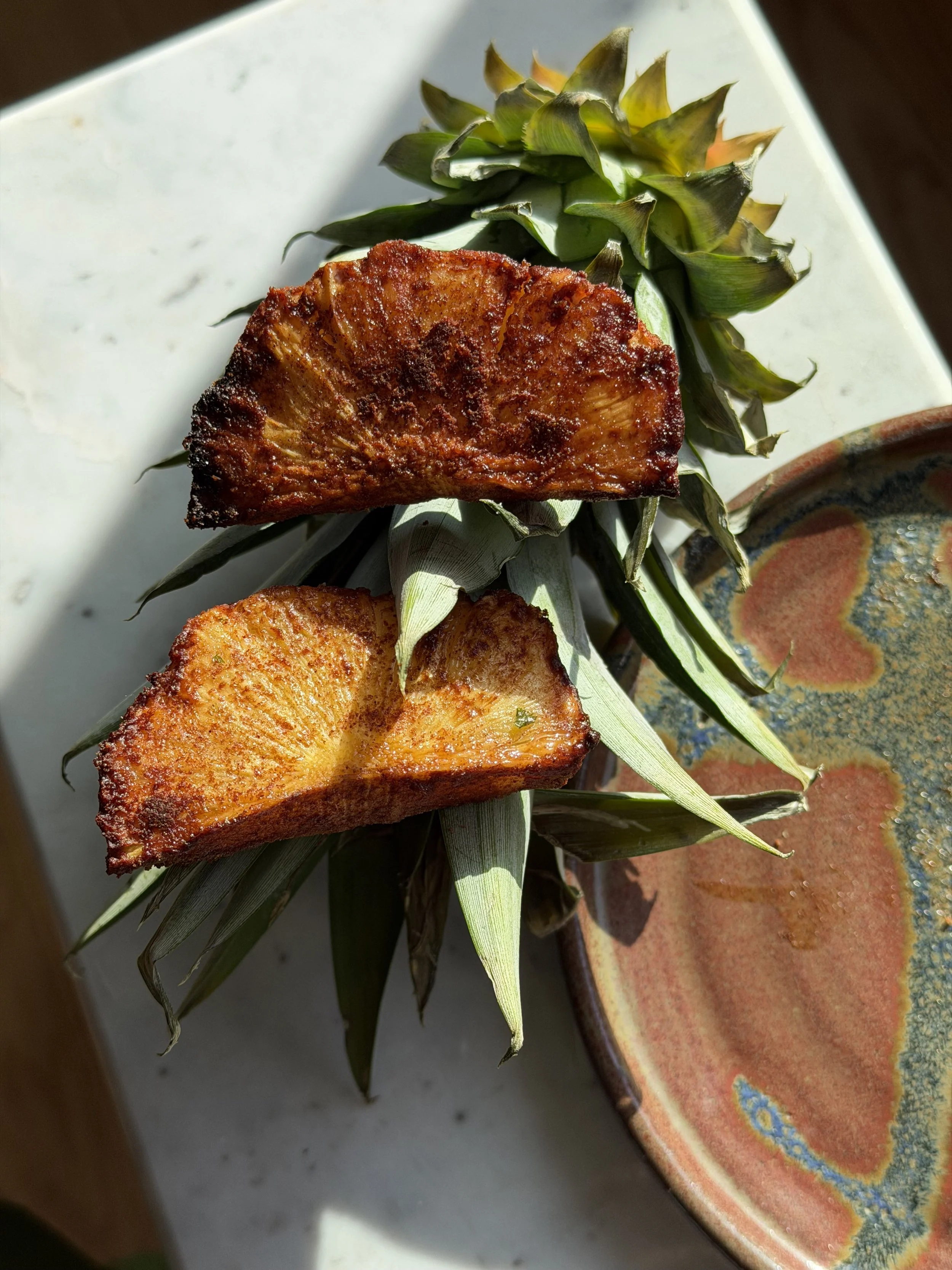 Grilled Pineapple, cinnamon, brown sugar. Can’t go wrong. you finish the meal with it.